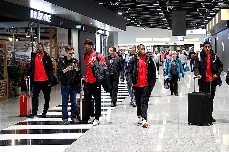 Сегодня после утреннего теоретического занятия и тренировки на базе в Тарасовке наша команда отправилась в аэропорт Шереметьево, чтобы вылететь в Красноярск на матч 10-го тура Премьер-Лиги против «Енисея». Главный тренер Массимо Каррера включил в состав делегации 23 футболиста.
