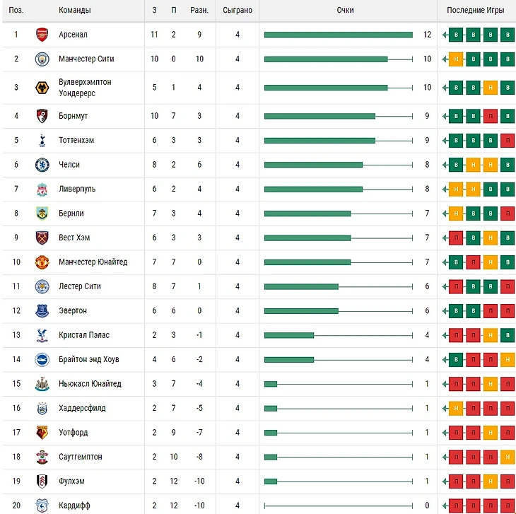 Арсенал. Стартовав с двух поражений от Челси и Манчестер Сити, канониры одержали 9 побед кряду с общим счетом (27:8). Конечно, из этого списка трудно выделить грозных соперников, их самыми сложными оппонентами были Эвертон и Уотфорд, подошедшие к матчам на Эмирейтс не в лучшей форме, но факт остается фактом, и Арсенал лучшая команда по очкам за последние 6 английских туров. Особенно отметить хочется Александра Ляказетта, француз набрал невероятную форму и участвовал в голевых свершениях в каждом победном матче АПЛ, суммарно набрав 4 гола и 4 ассиста в 6 поединках.