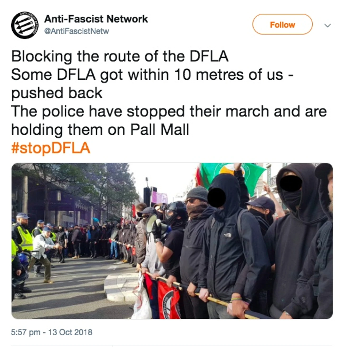 Но демонстрация, на которую он пошел, вылилась в массовые беспорядки, когда на пути колонны появились антирасисты. Кстати, именно антирасистская организация Kick It Out обнаружила сообщение Филлипса и сдала его со всеми исламофобскими потрохами.