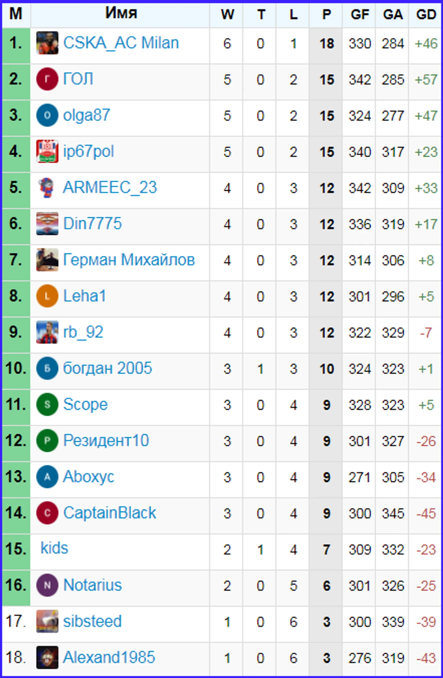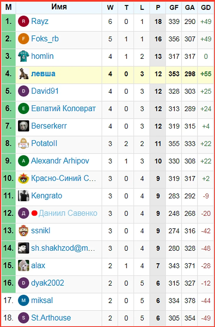 Участник Даниил Савенко снимается с кубкового турнира, согласно регламента, т.к. его команда-труп (без замен)... Его место с 11 тура турнира занимает команда тренера ист.ом... на результаты в группе замена участника не повлияет...