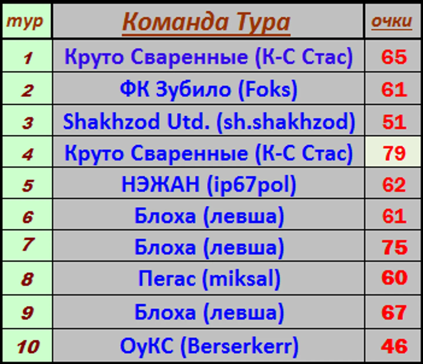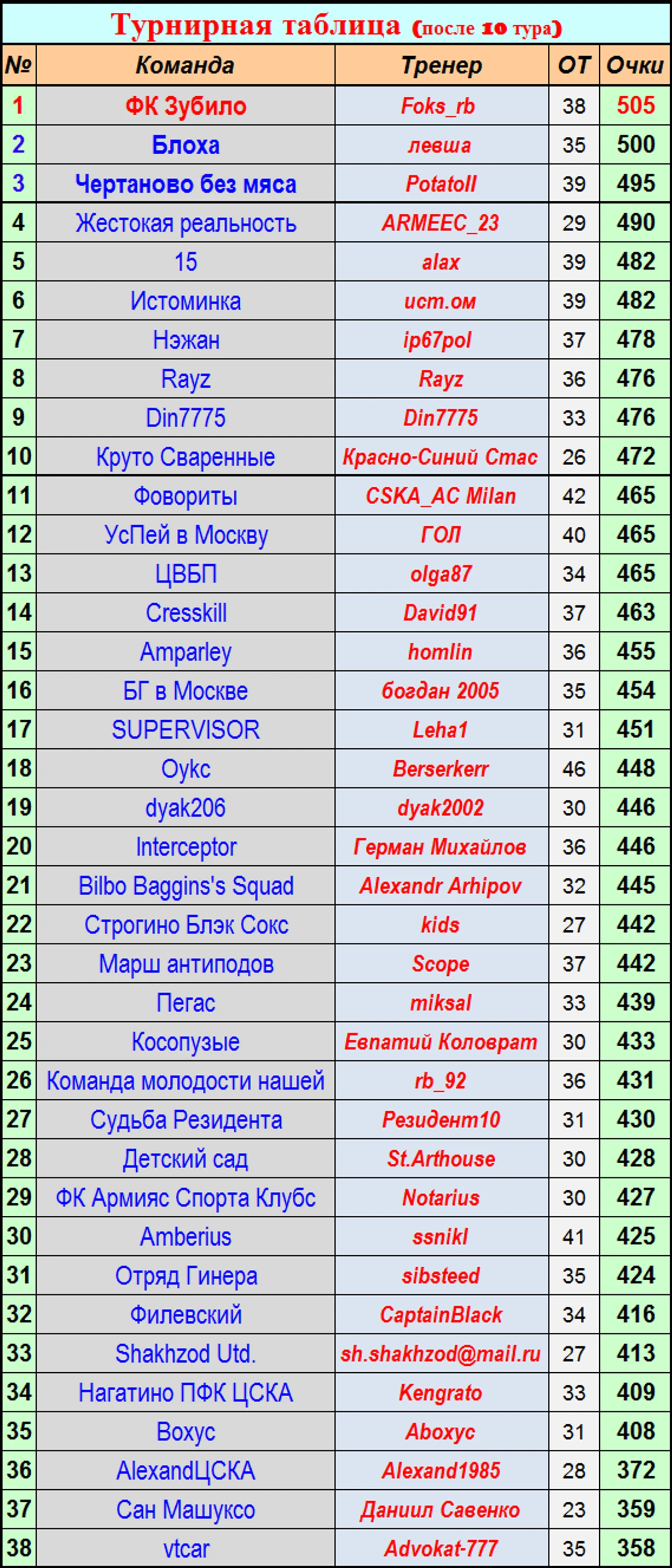 Турниры по fantasy. РПЛ 2018-2019. Итоги после 10 тура