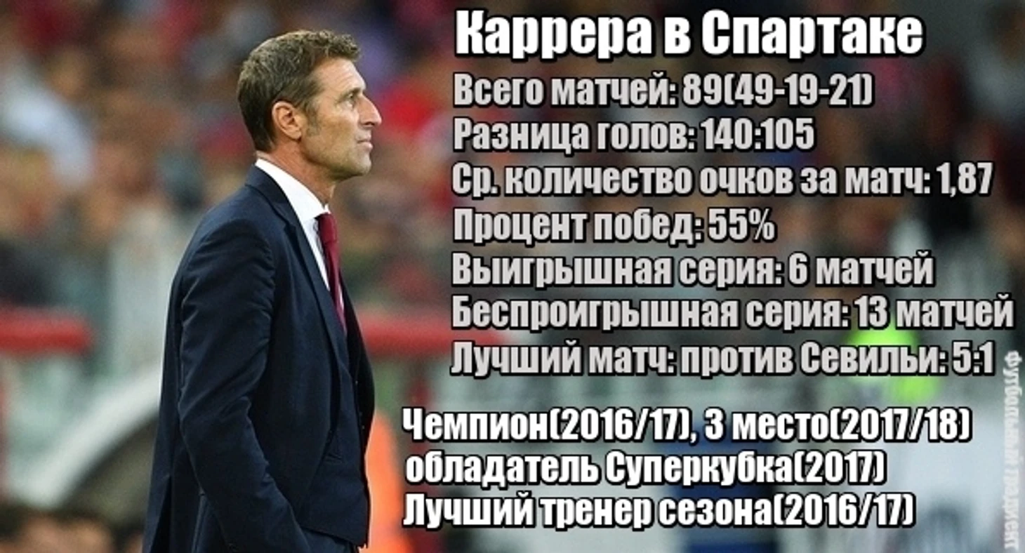 Статистика Массимо Карреры в качестве тренера московского Спартака