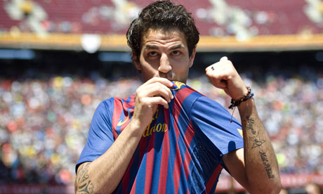 И вот, наконец, это случилось. Когда он выходил из туннеля на "Камп Ноу", был слышен оглушительный рев не менее 20000 болельщиков, которые пришли посмотреть презентацию Сеска. И хотя мероприятие было назначено на официальный выходной и стояла прекрасная погода, оно не собрало полный стадион, как это случилось после перехода Криштиано Роналду, когда 80000 человек забили под завязку трибуны «Сантьяго Бернабеу». Но это не важно. Здесь совсем другое. В данном случае, это было возвращением блудного сына после 8 долгих лет. Он снова оделся в родные цвета – синий и гранатовый, он был в футболке под номером 4. И хотя он скромно говорил, что ему не важно, под каким номером играть, на самом деле очень даже важно. Для него это знак, и Сеск был очень благодарен Тьяго, который уже успел громко заявить о себе и также претендовал на священный номер, что тот уступил ему четверку. И вот Фабрегас стоял на поле «Камп Ноу» в «своей» футболке… «Я немного нервничал». – признался он. И когда болельщики попросили его поцеловать герб на футболке, он этот сделал. Пустой жест, показуха? Вряд ли. В «Барселоне» прекрасно понимают, что необходимо углублять состав, и уже задумываются, как сохранить победные традиции после того, как уйдет Хави. Но в то же время, хорошо известно, как нелегко дается игрокам адаптация к стилю «сине-гранатовых».