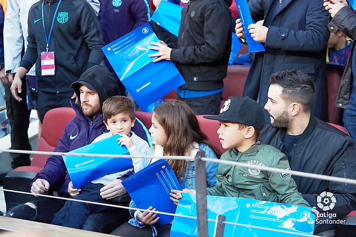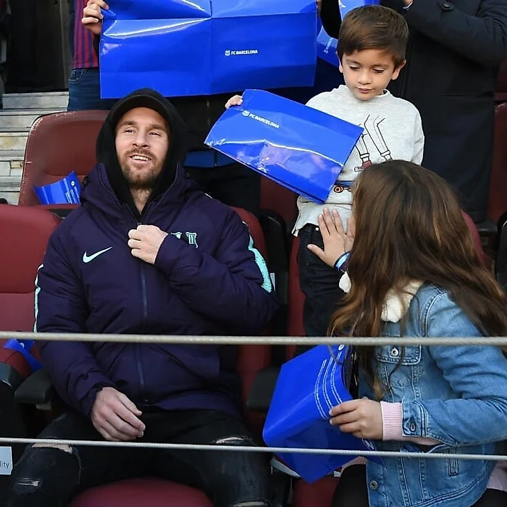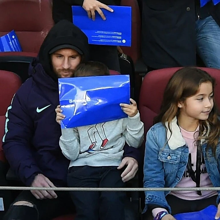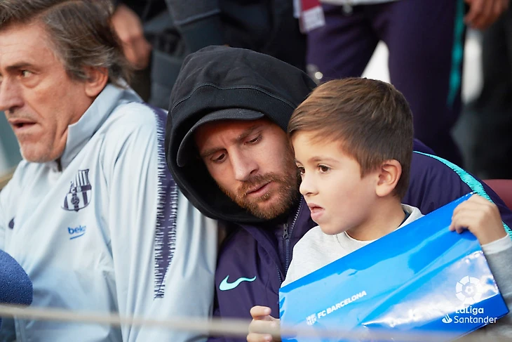 Лео Месси травмировал предплечье и не смог выйти на класико. Аргентинец приехал на матч вместе с сыном Тьяго: