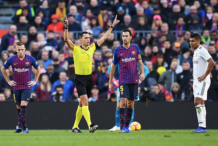 • VAR дебютировал в класико. Рефери Хосе Мария Санчес Мартинес сомневался, нарушил ли Варан правила на Суаресе в штрафной, но повтор все разъяснил. Назначили пенальти, с которого Суарес забил первый из трех своих голов.