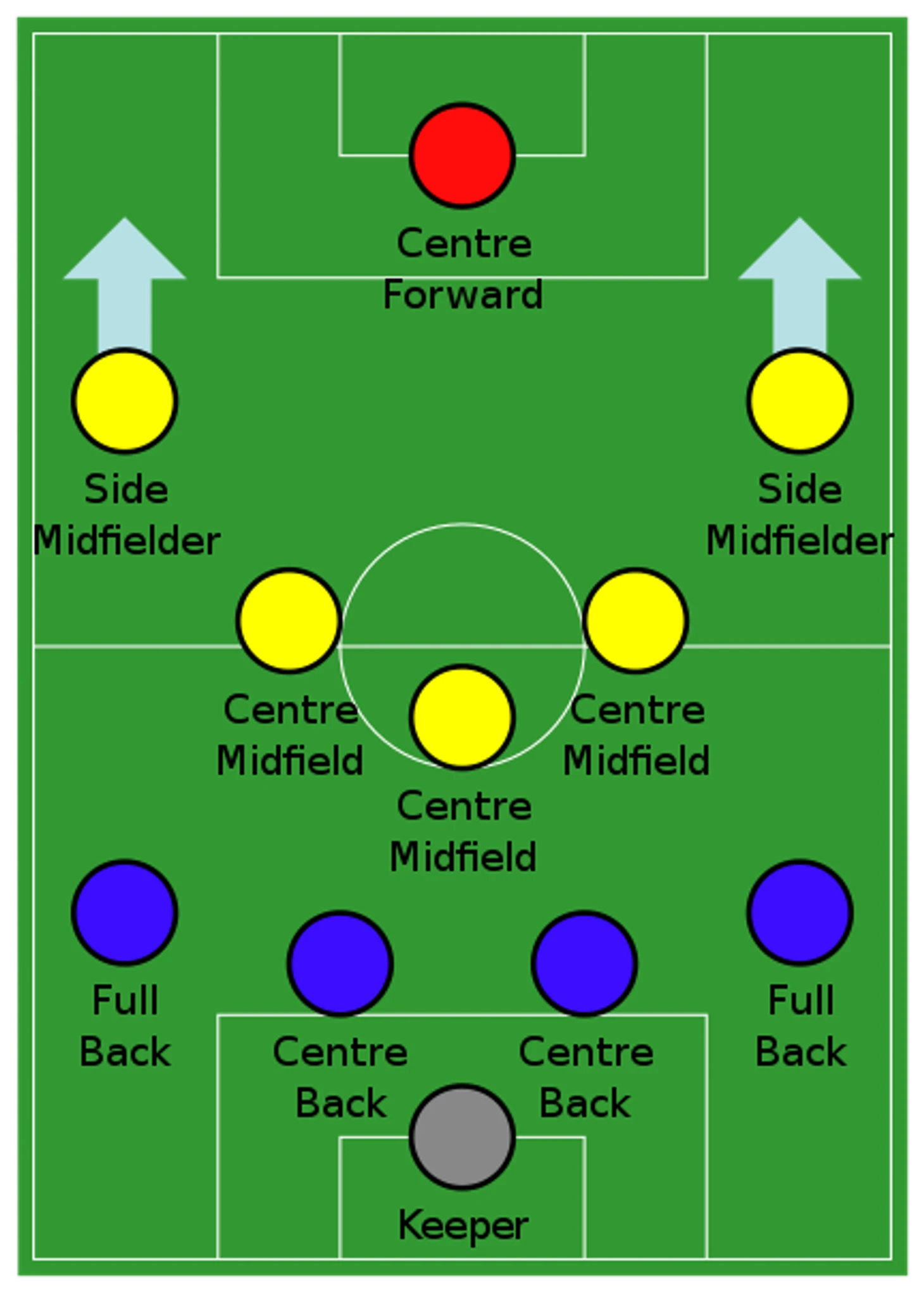 Одна из самых защитных тактик – эта формация 4-5-1. От четырех защитников в этом случае не требуется готовность в любой момент переходить к атакующей роли, а два полузащитника в основном занимаются поддержанием баланса в обороне. Это оставляет в атаке четырех игроков, хотя строится нападение вокруг единственного форварда. Если у вас быстрых форвард, атака становится его единоличным предприятием: поддерживают его максимум два игрока, а чаще всего один. Остальные не теряют своей позиции. Если нападающий отличается скорее техникой, чем скоростью, то вся схема выдвигается немного вперед, чтобы сократить расстояние до чужих ворот и помочь центрфорварду. Без этого у соперников появляется слишком много пространства, чтобы обезвредить атаку.