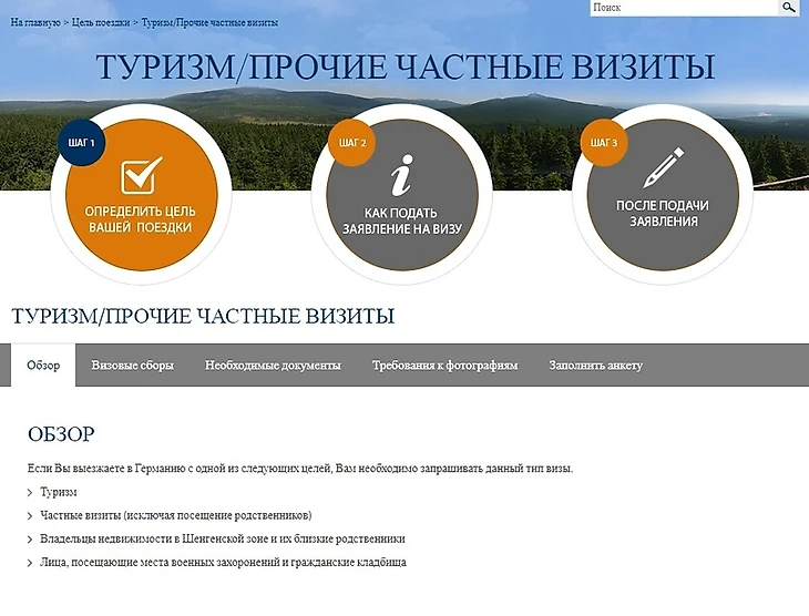 Сайт визового центра Германии в России. Во вкладках вы найдете всю необходимую информацию.