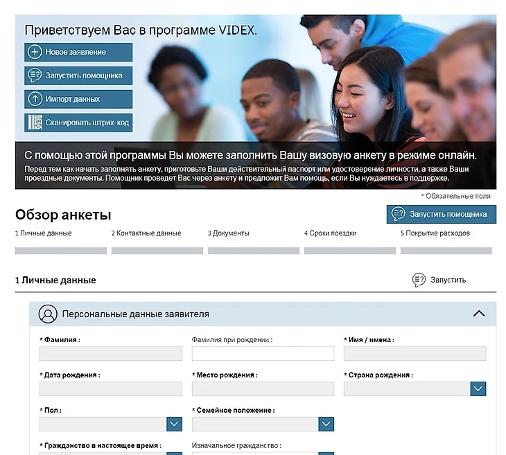 Итак, для заполнения анкеты на немецкую визу, вам следует перейти по ссылке https://videx.diplo.de/videx/desktop/index.html#start. Обновленная форма значительно упростила задачу – никаких ухищрений насчет дат и иных сложностей больше нет, всё стало предельно просто и понятно. Помните правила транслитерации – немецкий язык имеет свои особенности произношения и написания. Чтобы не ошибиться и не получить отказ в визе из-за мелких недочетов, рекомендуем обратиться к инструкции по заполнению анкеты - https://www.vfsglobal.com/germany/russia/moscow/pdf/Documents.pdf. В ней всё расписано максимально подробно, с примерами, пояснениями и скриншотами. Немцы заботятся о тех, кто собирается въехать в их страну и пополнить казну еще на несколько евро.