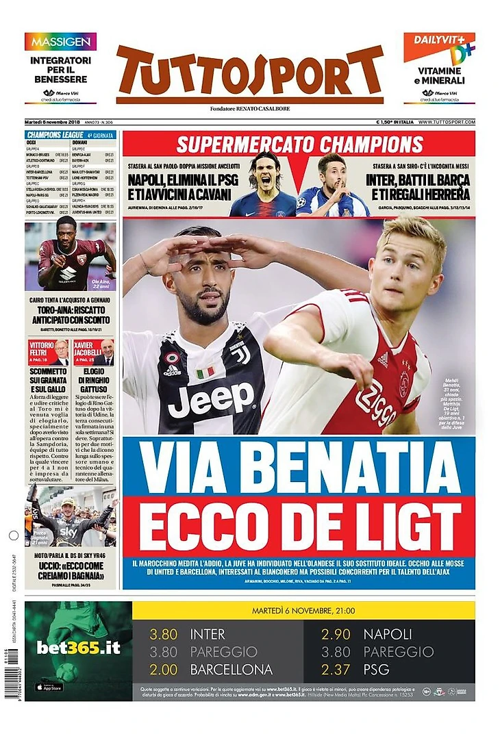 Марокканец обдумывает уход, «Юве» определил голландца в качестве его идеальной замены. Внимание на движения «Юнайтед» и «Барселоны», заинтересованных в игроке Бьянконери, но и возможных конкурентов за таланта «Аякса».