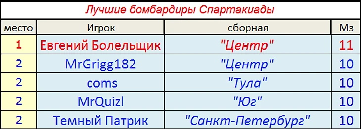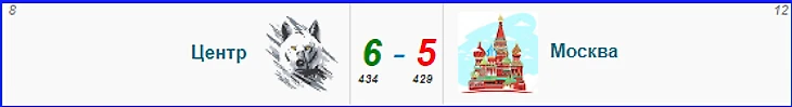 У команда Центр уже двухматчевая победная серия! В их составе лучший бомбардир Спартакиады после 13 тура... В этом туре они в сложной борьбе сумели победить Москву... Эта победа хозяев позволила им подняться в верхнюю част таблицы