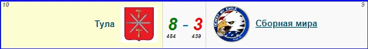 После 3 проигранных матчей Тула наконец то добилась уверенной победы и в таблице после этого тура стала соседями команды гостей.... Сборная мира проигрывает в 3 раз подряд...