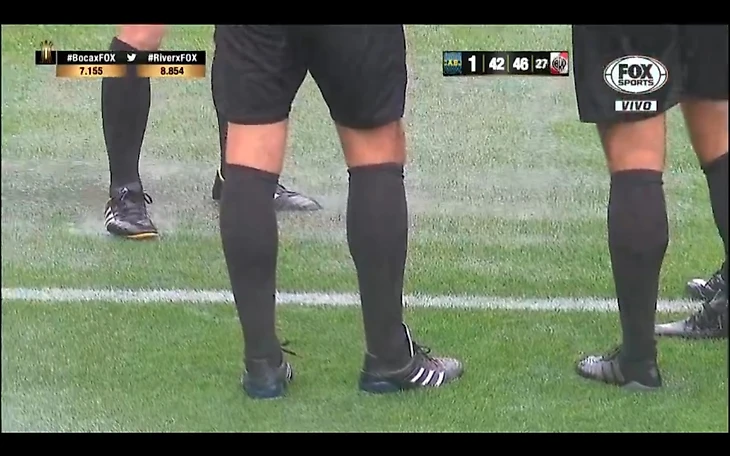 Начало матча через 2 часа, команды ещё не прибыли на стадион, но на поле уже появились судейская бригада во главе с Роберто Тобаром: