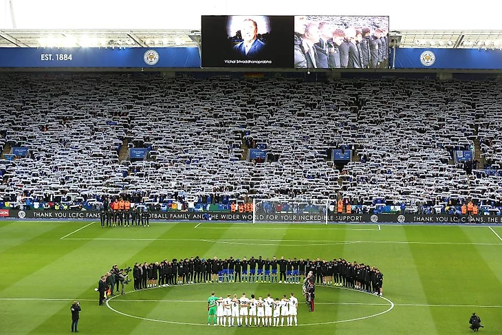 Вчера состоялся первый домашний матч "Лестера" после трагедии. Город, клуб и болельщики почтили память безвременно ушедшего владельца клуба.