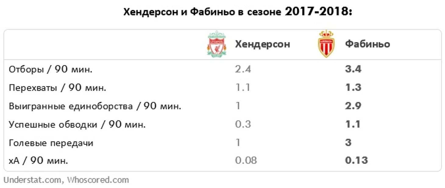 Эти проблемы поможет решить Фабиньо, который отлично проявляет себя, когда нужно играть под прессингом – цифры на дриблинге у него намного выше, чем у Хендерсона. Помимо этого, он ощутимо лучше Хендерсона в обороне, что видно, если сравнивать их прошлогодние выступления в своих чемпионатах: