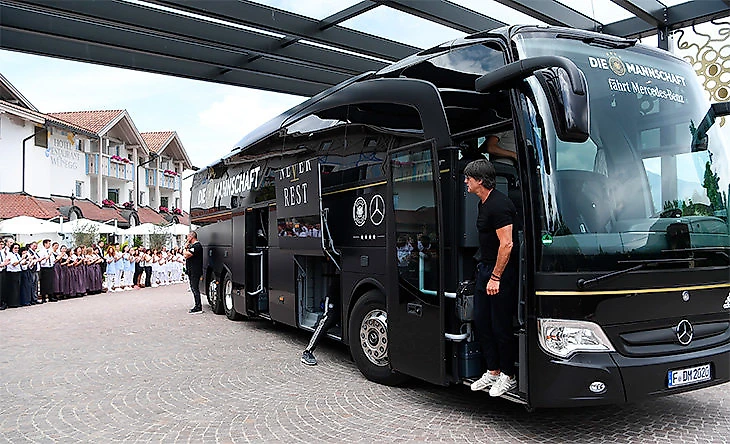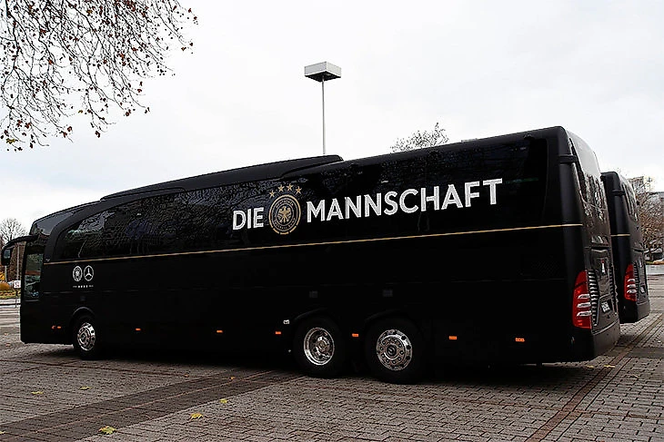 Концерн предоставлял сборной Германии автобусы марок Travego и Tourismo. Членов футбольного союза Германии регулярно возили водители от «Мерседеса».