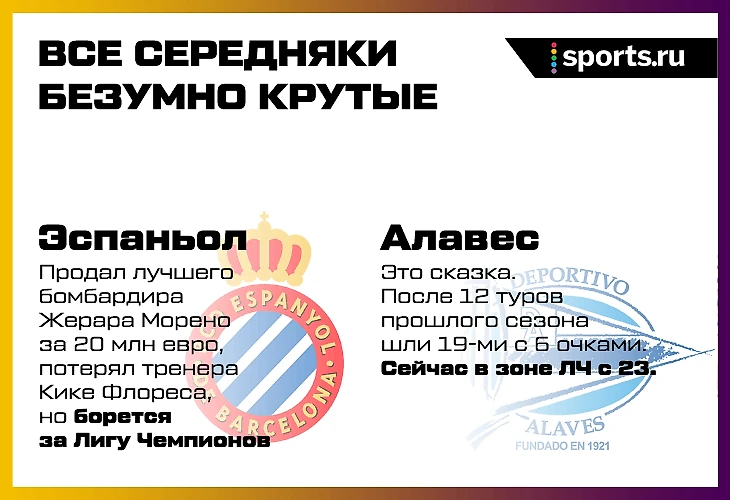 Интересно следить не только за топами. «Эспаньол» и «Алавес» – главные сенсации. «Бетис» и «Вальядолид» уничтожают рекорды.