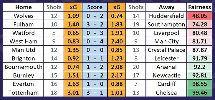 Самым несправедливым (с точки зрения модели xG) результатом стало домашнее поражение "Вулверхэмптона" от "Хаддерсфилда" (0-2).