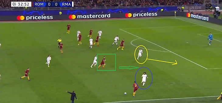 Но кроме того, что Мадрид сознательно отдал мяч Роме и играл исключительно на контратаках, было еще одно изменение, которое сделал Солари в перерыве.