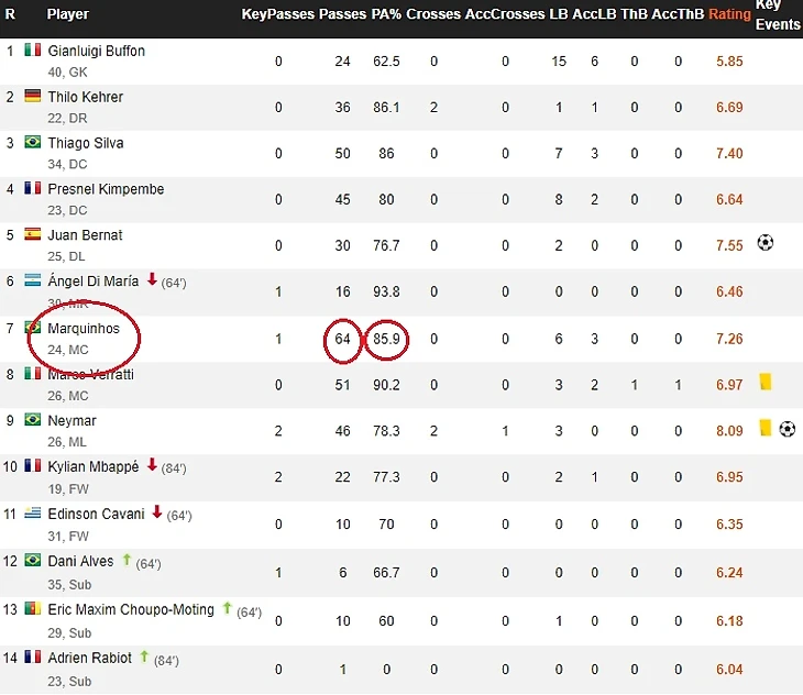 Маркиньос выдал очень качественный матч в качестве опорника, подчищал за всеми, опускался очень низко, чтобы получить мяч и передавать его уже вперед своим фантазистам.