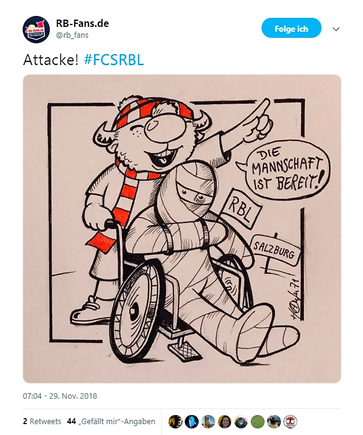 P.S. Более 2000 болельщиков «РБ Лейпцига» приехали в Зальцбург на матч. И пока у зальцбургцев был свой перфоманс на всю арену, на заполненной гостевой трибуне был организован перфоманс в честь юбилея саксонского клуба, которому в мае 2019 исполнится 10 лет.