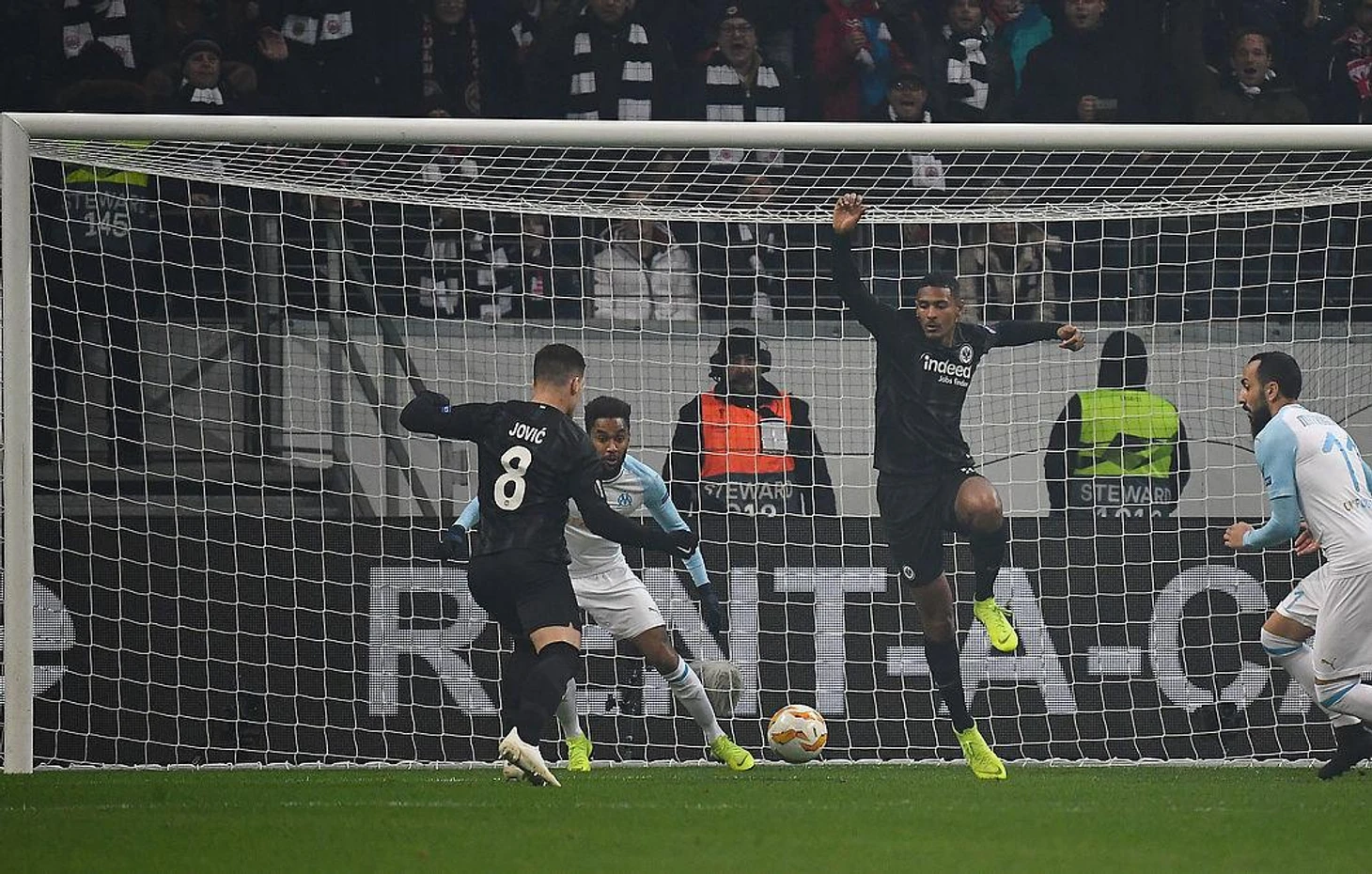 Французам уже нечего было ловить в предстоящем матче, поэтому Руди Гарсия выставил на игру резервный состав, в отличие от Ади Хюттера, который выпустил практически всех тех, кто еще добывал на выходных победу у «Аугсбурга». На пресс-конференции тренер «орлов» заявил, что команда постарается уже с первых минут показывать свою отличную форму и выиграть группу. Ни в том, ни в другом он не соврал. Одной из атакующих звезд нынешнего «Айнтрахта» Луке Йовичу понадобилось всего лишь 58 секунд, чтобы отличиться. После розыгрыша углового по воротам пробил Гачинович, но его удар парировал голкипер французов, и пока защита находилась в замешательстве, мяч подобрал молодой серб и отправил в сетку.