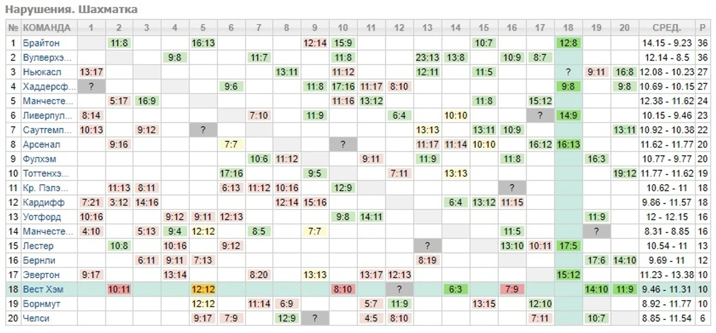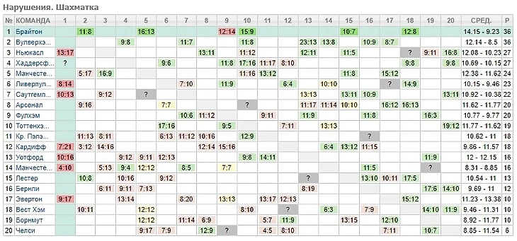 Средний показатель "чаек" на домашнем поле - 15,43 фола за матч. Это наилучший результат в лиге. При этом, со значительным отрывом от ближайших преследователей. В семи гостевых встречах "Брайтон" одержал победы по фолам во всех. Прекрасный результат!