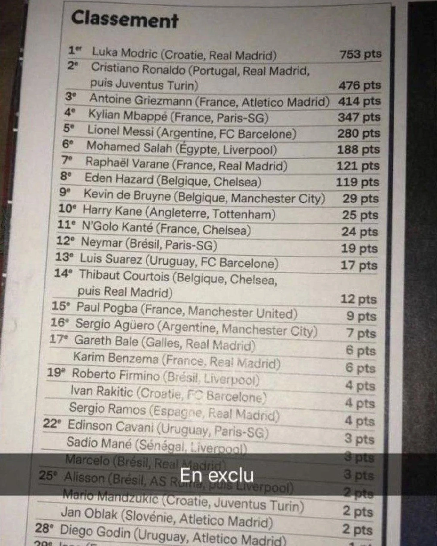 Сегодня мы узнаем имя нового обладателя «Золотого мяча». Официально победителя объявят в 23:00 по московскому времени, но кто-то уже слил в сеть полный список с результатами голосования.