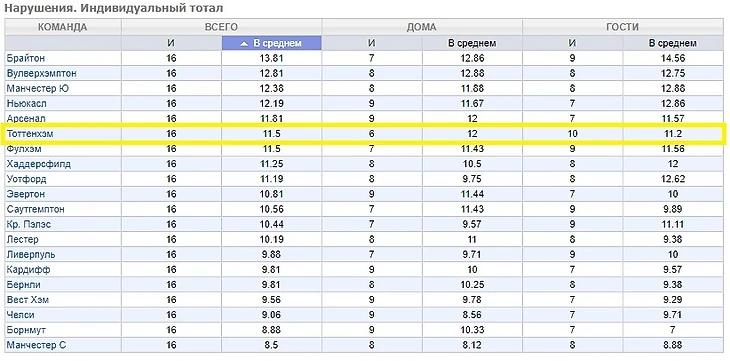Даже лидеры могут быть очень хулиганистой бандой. Такие, как например, «Тоттенхэм». Подопечные Почеттино находятся на шестом месте в хит-параде хулиганов АПЛ. Средний показатель «шпор» — 11,5 фола за игру. На временно домашнем «Уэмбли» результат почти равный — 12 нарушений за матч. К слову, «Тоттенхэм» также «здорово» нарушает и в Лиге Чемпионов. Но мы сейчас об Англии. Интересные показатели у «шпор» и по исходам на фолы. На «Уэмбли» Почеттино и его команды выиграли четыре раза, однажды сфолили на равных с соперником (с «Сити»), и еще раз проиграли. Статистика дома 4-1-1.