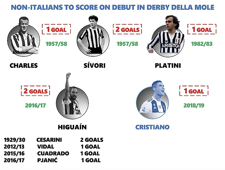 Криштиану Роналду вступил в элитный клуб легионеров «Ювентуса», которые забивали в своём дебютном туринском дерби