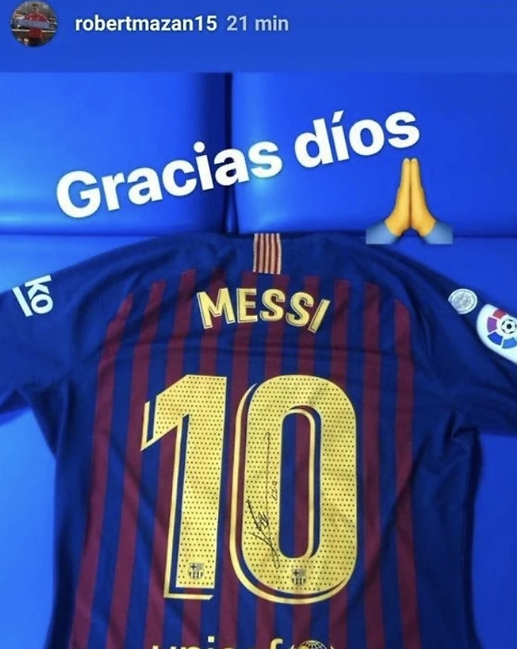 После матча Барселона-Сельта, который состоялся на Камп-Ноу в субботу и закончился победой каталонцев, Мазань получил футболку аргентинца. На эмоциях он тут же выложил фотографию в сторис своего инстаграма с подписью: «Спасибо Господи!»
