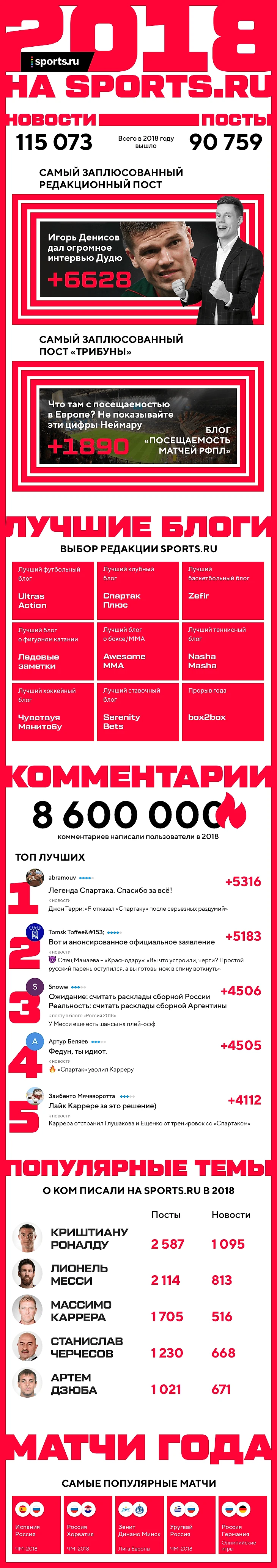 Главное, что отличает Sports.ru от других медиа – гениальные пользователи, которые вместе с редакцией делают спорт лучше. Ваши посты, комментарии, новости и статусы – супер. Давайте и дальше жечь и вместе делать лучшее спортивное сообщество. На 2019-й мы запланировали несколько сюрпризов, которые сделают Трибуну Sports.ru еще круче.