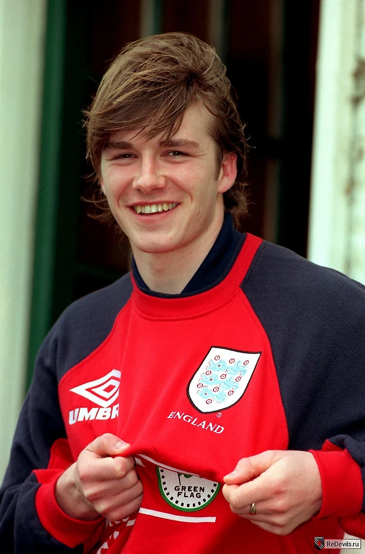 Так выглядел Бекхем в начале своей карьеры, когда подписал свой первый контракт с клубом в 1992 году. Дебютировал он в команде Манчестер Юнайтед в возрасте 17 лет, выйдя на замену в матче Кубка Футбольной лиги против «Брайтон энд Хоув Альбион», а вскоре после этого подписал свой первый профессиональный контракт с клубом. Причёска этого времени мало чем могла удивить, такую носила половина тинэйджеров в Англии и по всему миру.