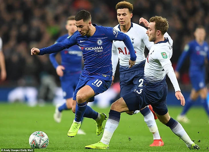 «Челси» действительно старался как мог вести игру. Кажется, что наблюдалось сверх обычного желание победить, но вот это постоянное движение все равно в большинстве эпизодов сваливалось к тому, что Азар должен сделать все сам. Особенно это было заметно минуты после 60. Бельгиец, совершивший 8 (!!!) удачных обводок за матч (на всякий случай, что после него идет Эриксен со скромной цифрой 2) пытался пройти как мог всех. Счет показывает, что всех обмотать все-таки не мог.