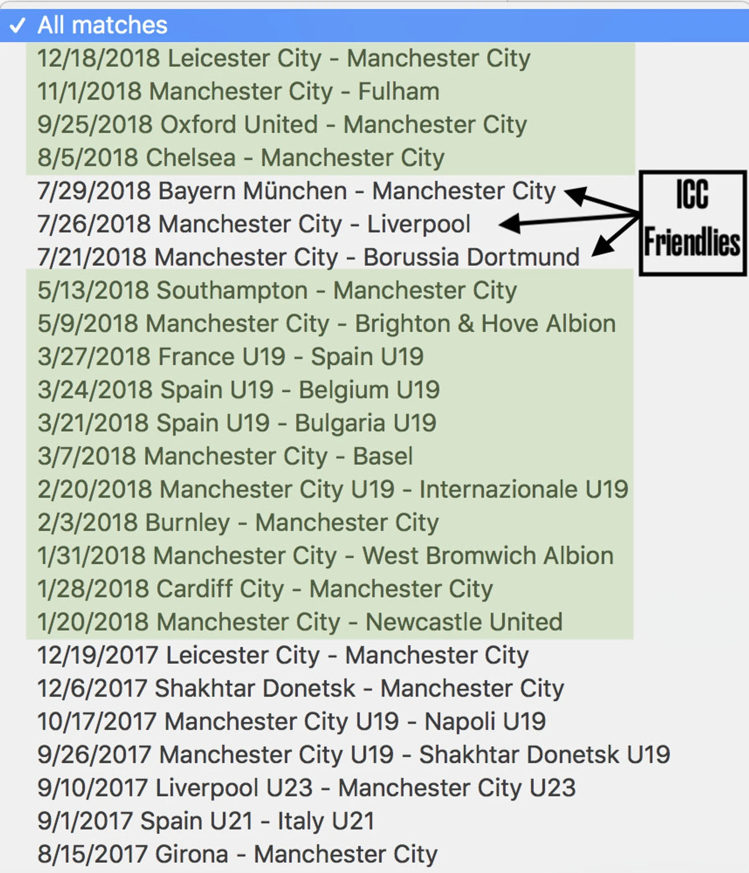 Я смотрел только официальные игры 2018 года, которые были доступны в базе данных Wyscout. Это означало исключение трех товарищеских матчей Кубка чемпионов, которые прошли летом, так как этим играм не хватает конкурентоспособности и общего уровня физической подготовки, чтобы быть по-настоящему показательным.