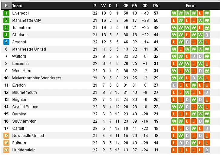 Турнирная таблица на данный момент выглядит следующим образом.