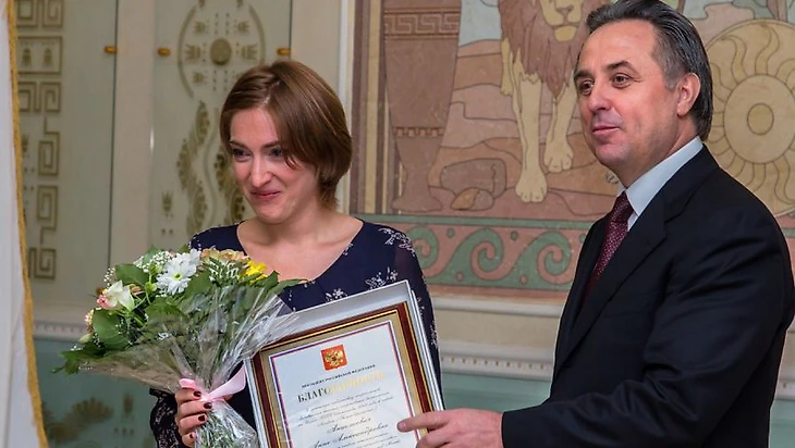 Анна Анцелиович получает благодарность правительства РФ от Виталия Мутко