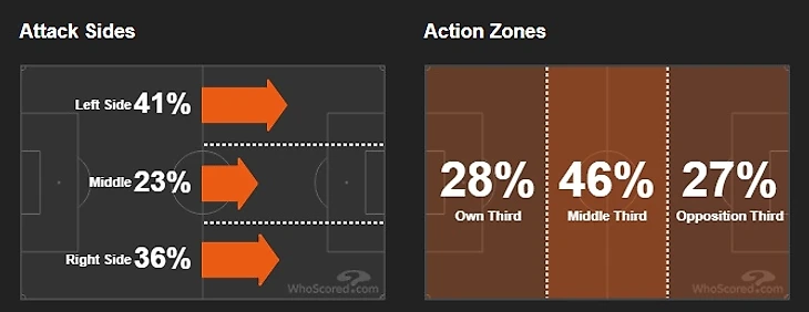 Зональное распределение активности «Мадрида» в домашних и гостевых матчах Ла Лиги