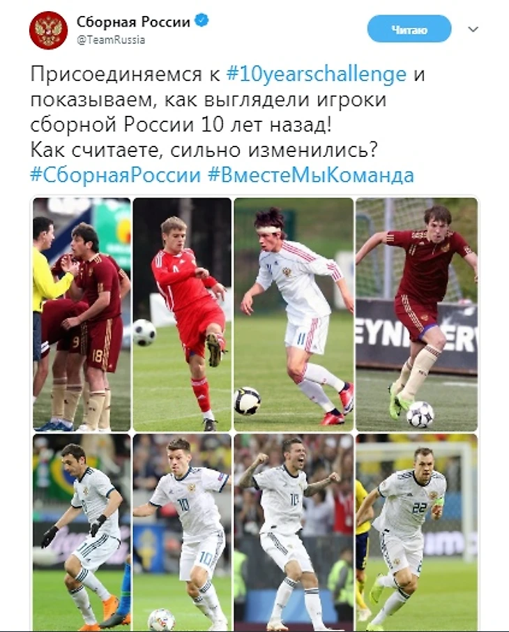 В начале января в социальных сетях обрел популярность хештег #10yearschallenge, под эгидой которого пользователи выкладывали две своих фотографии - одна из 2009-ого, вторая из наступившего. Поучавствовали в этом флешмобе совершенно далекие друг от друга люди и даже компании - от Минфина и сборной Бразилии по футболу до  «Монако» и Франческо Тотти.