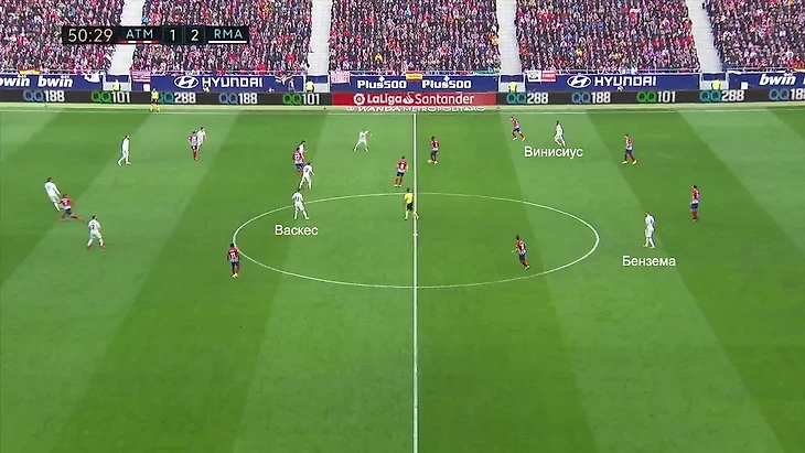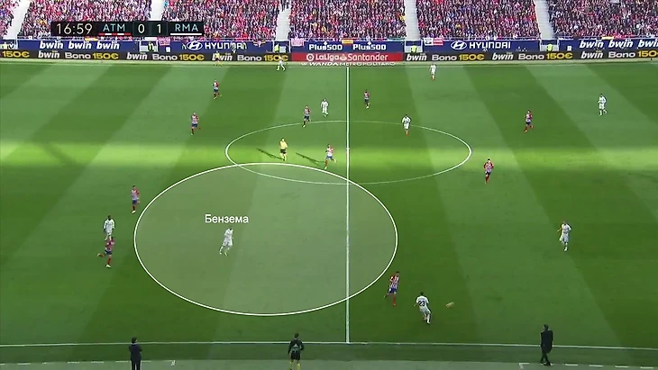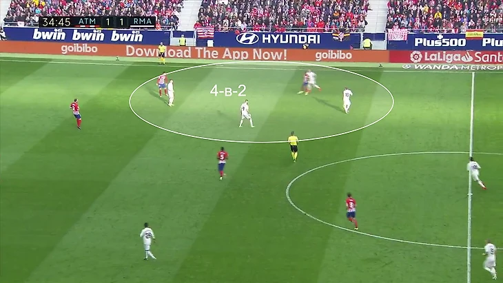 Как и при прессинге, Симеоне использовал прием с опекой Крооса и Модрича фланговыми полузащитниками, что оставляло свободу Карвахалю и Регилону.