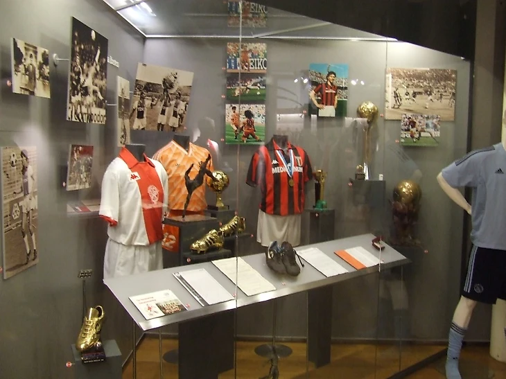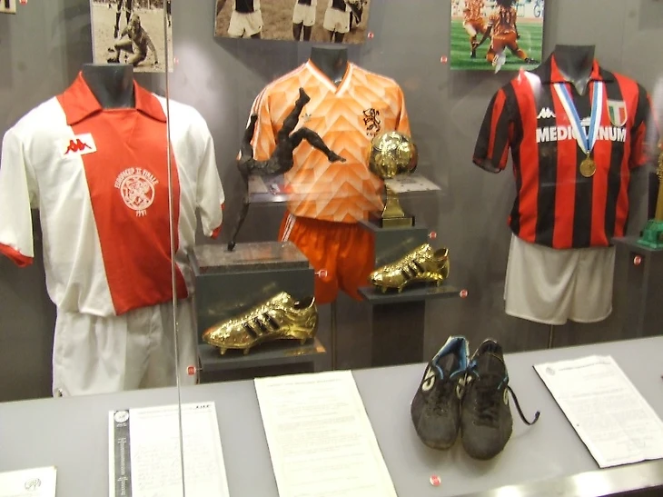 Отдельный стенд в этом музее имеет и такая звезда мирового футбола, как Марко ван Бастен, трехкратный обладатель "Золотого мяча", как лучший футболист года в Европе (1988, 1989, 1992), обладатель "Золотой бутсы" (1986). Примечательным мне показался и такой факт, что в музее Аякса нашлось место и джерси Милана, конечно Милан далеко не Фейеноорд, относительно, что касается болельщиков Аякса, но всё же, хотя в свое время Кройф всё-таки умудрился перейти из Аякса в Фейеноорд.