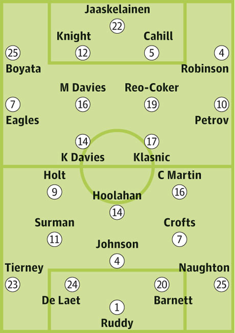 Запасные: Мерфи, Бузаки, Перон, Агьеманг, Хельгусон, Эпрайм, Вон Мун, Шитту, Андраде, Халл, Кэмпбелл, Смит, Пунчон, Орр, Коннолли, Хилл