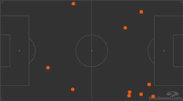 Также большинство «умных» передач (по Wyscout – это такие пасы, которые разбивают линии, дают позиционное преимущество принимающему мяч партнёру; обязательное условие – должен отрезать 2-3 игроков соперника) пришлось именно на правую бровку «Фенербахче», левую – «Зенита».