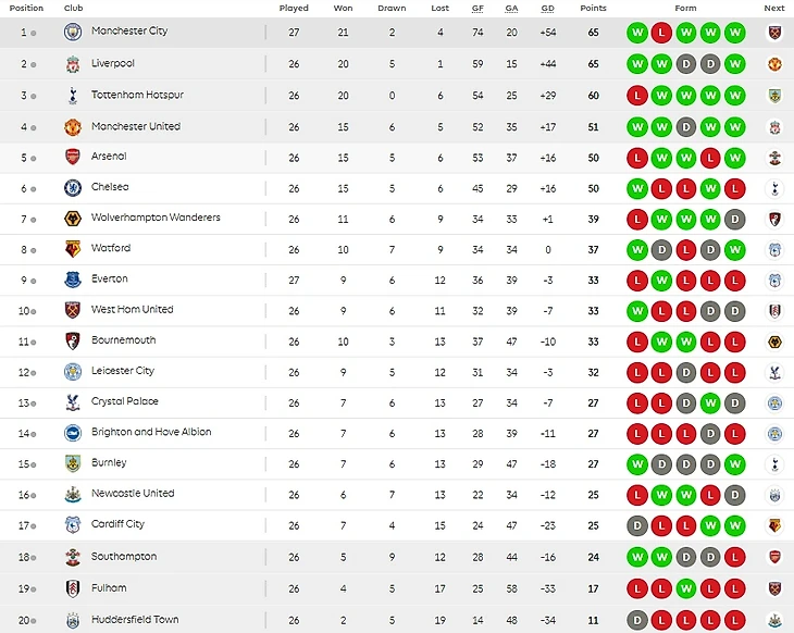 В центральном матче тура "горожане" уничтожают лондонский "Челси", забив 4 гола в первые 24 минуты. Сарри рискнул играть против Гвардиолы в атаке и проиграл. Это самое крупное поражение "Челси" в истории премьер-лиги. Агуэро оформляет второй хет-трик подряд и сравнивается с Аланом Ширером по их количеству (11). "Сити" продолжает лететь к чемпионству.