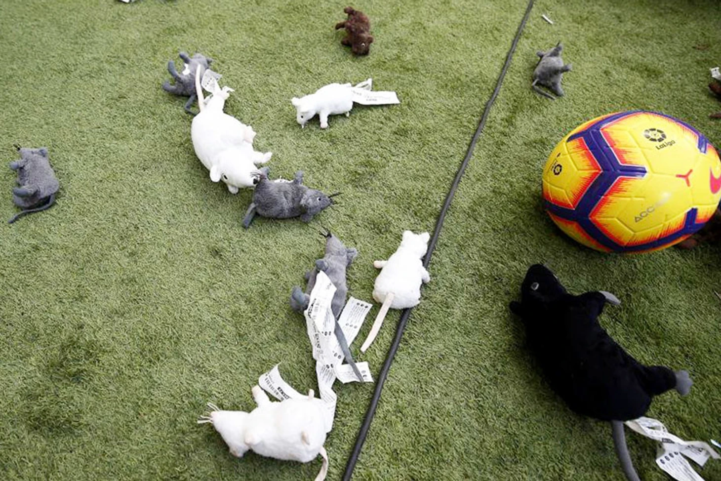 Фанаты Атлетико не только вывесили баннеры «Тибо — крыса», но и забросали голкипера «Реала» плюшевыми крысами.