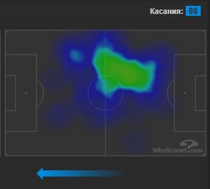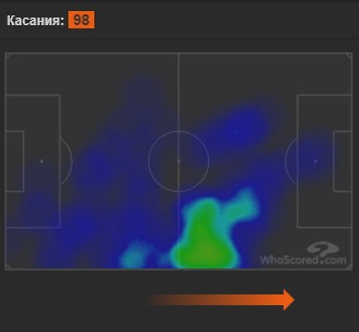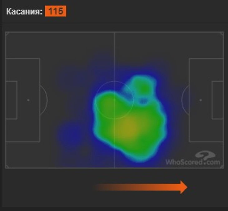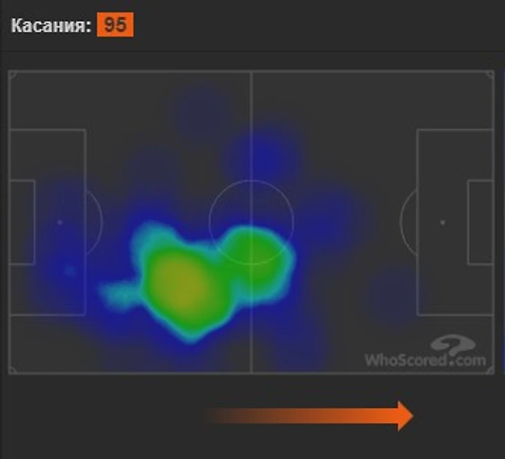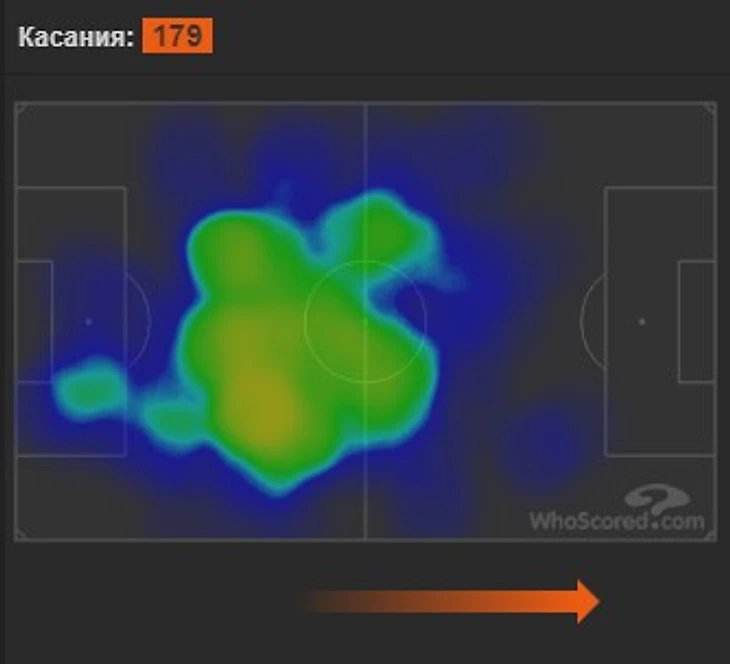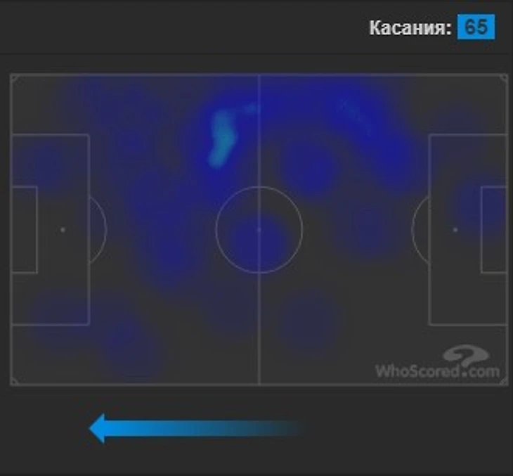 Передачи: нет ассистов; 0,6 ключевой передачи; 68,4 передачи за матч с точностью 87,5%; 4,2 длинных передач; не дает пасов вразрез и делает 0,1 кросса.