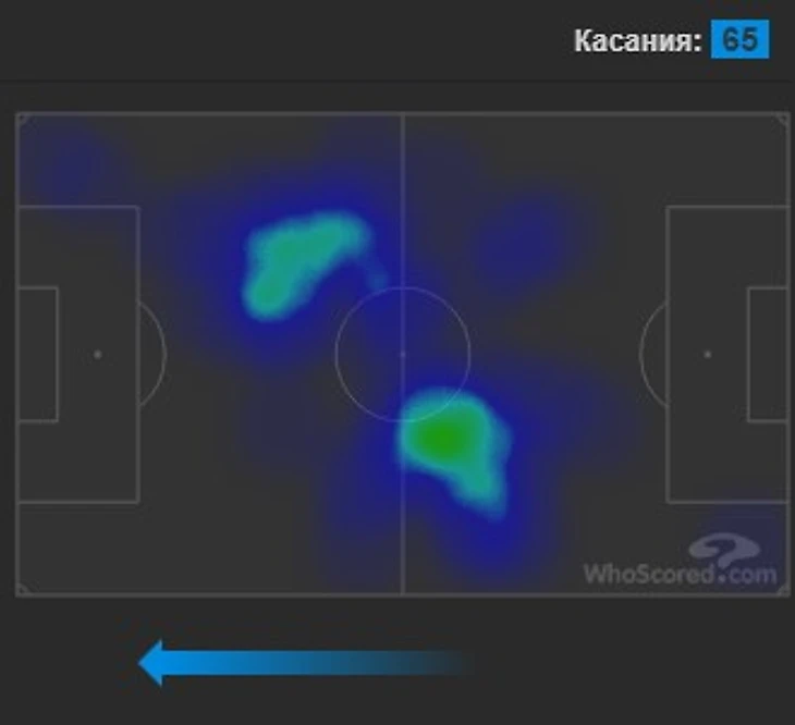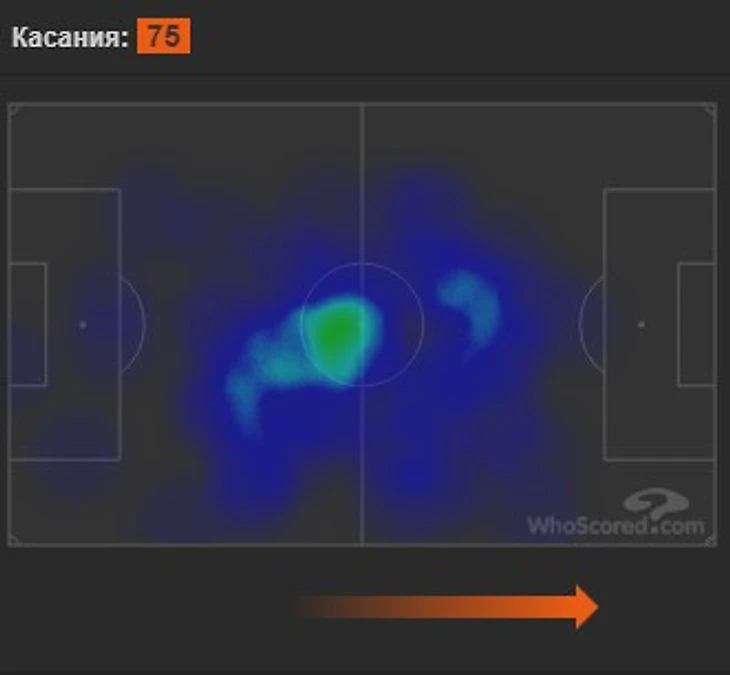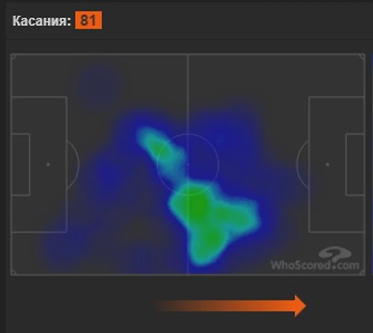 28 ноября. Домашний матч с очень мотивированным Сити. 2-2. Здесь Ндомбеле играет пару опорников с Ауаром. Их совместная карта для наглядности. Уровень оппозиции явно топ.