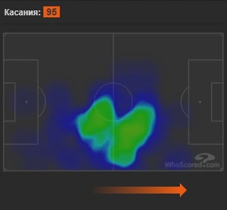 Заметно, что Матич играет ниже Эрреры (выносы, блоки), обеспечивает выход из обороны (длинные пасы). При этом более груб в работе с мячом, больше потерь и брака. Габаритный всё-таки персонаж, не самый ловкий.