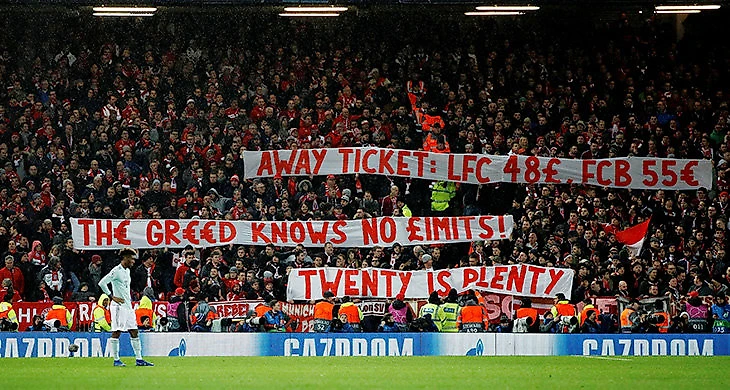 При этом в целом «Энфилд» смотрел матч довольно тихо. Подняться на ноги англичан неожиданно заставили гости: в начале второго тайма фанаты «Баварии» растянули баннер «Гостевые билеты: «Ливерпуль» – 48 фунтов, «Бавария» – 55 евро. Жадность не знает границ. 20 – более чем достаточно!». Болельщики «Ливерпуля», которые сами не первый год ведут борьбу с дорогими билетами, аплодировали такому посылу стоя.