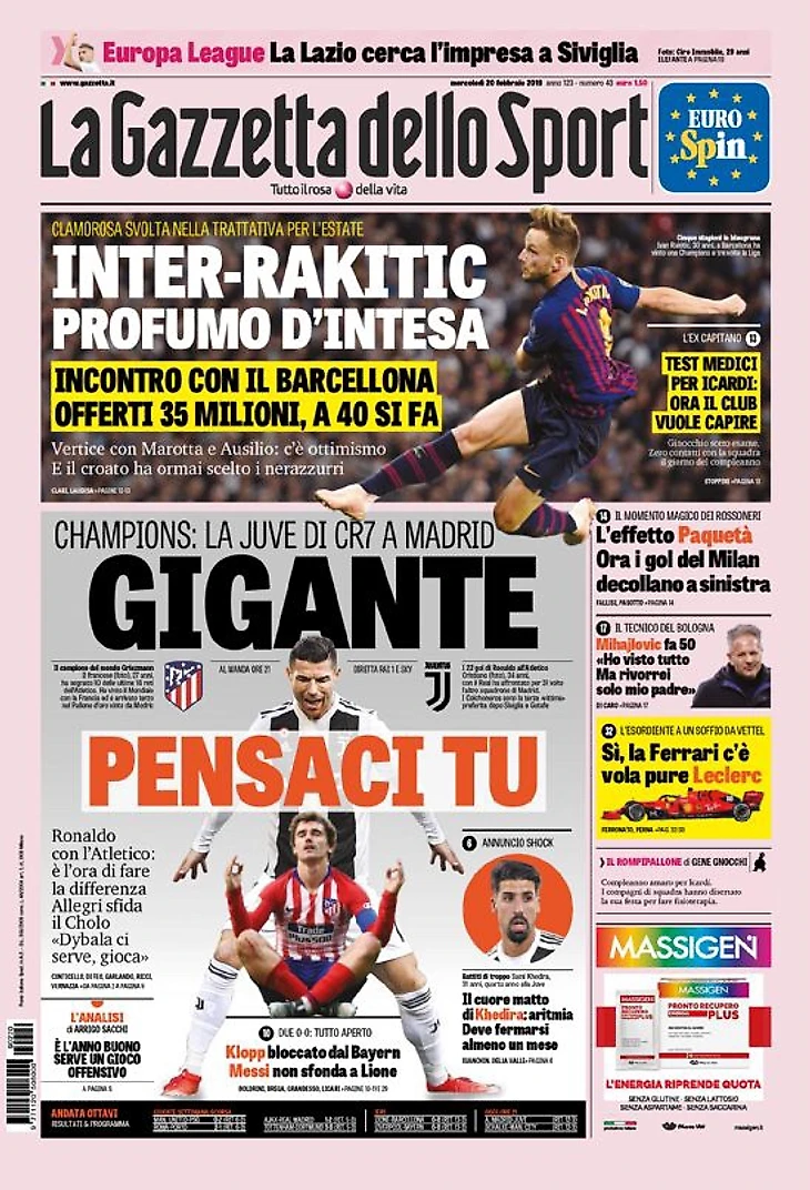 Теперь ты! Заголовки Gazzetta, TuttoSport и Corriere за 20 февраля