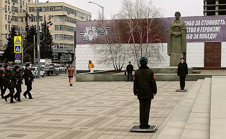Позже мы пошли прогуляться по центру городу. Впрочем, как такового центра в Краснодаре толком-то и нет – есть длинная улица Красная, на которой сосредоточена вся общественная жизнь. Тут базируется основная часть баров и ресторанов, все хоть сколько-нибудь интересные памятники и мемориалы, Вечный огонь, Театр драмы (где, как мы не могли не поострить, надо было выступать Ули Хеннесу с той самой декабрьской пресс-конференцией), Доска почета лучших работников города в самых разных сферах и два самых фешенебельных отеля.